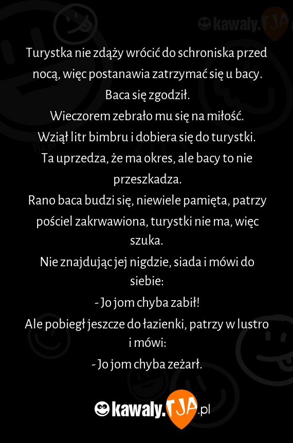Turystka nie zdąży wrócić do schroniska przed nocą, więc postanawia zatrzymać się u bacy.
