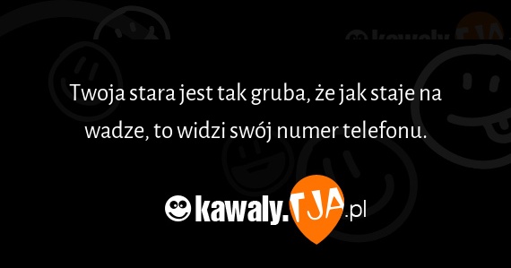 Twoja stara jest tak gruba, że jak staje na wadze, to widzi swój numer telefonu.