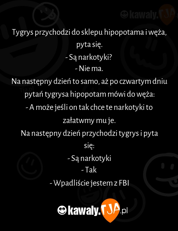 Tygrys przychodzi do sklepu hipopotama i węża, pyta się.