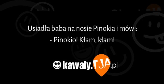 Usiadła baba na nosie Pinokia i mówi: - Pinokio! Kłam, kłam!
