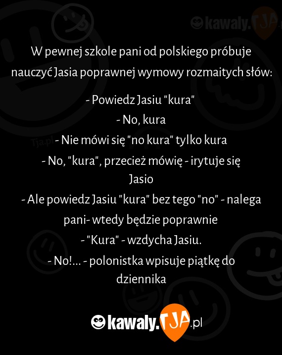 - Ale powiedz Jasiu "kura" bez tego "no" - nalega pani- wtedy będzie poprawnie