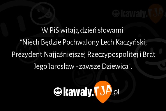 W PiS witają dzień słowami: "Niech Będzie Pochwalony Lech Kaczyński, Prezydent Najjaśniejszej Rzeczypospolitej i Brat Jego Jarosław - zawsze Dziewica".