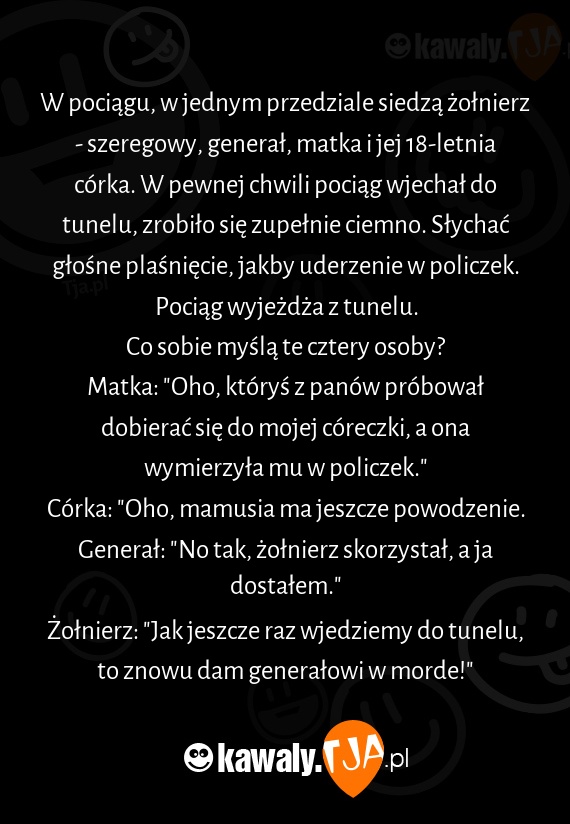Żołnierz: "Jak jeszcze raz wjedziemy do tunelu, to znowu dam generałowi w morde!"