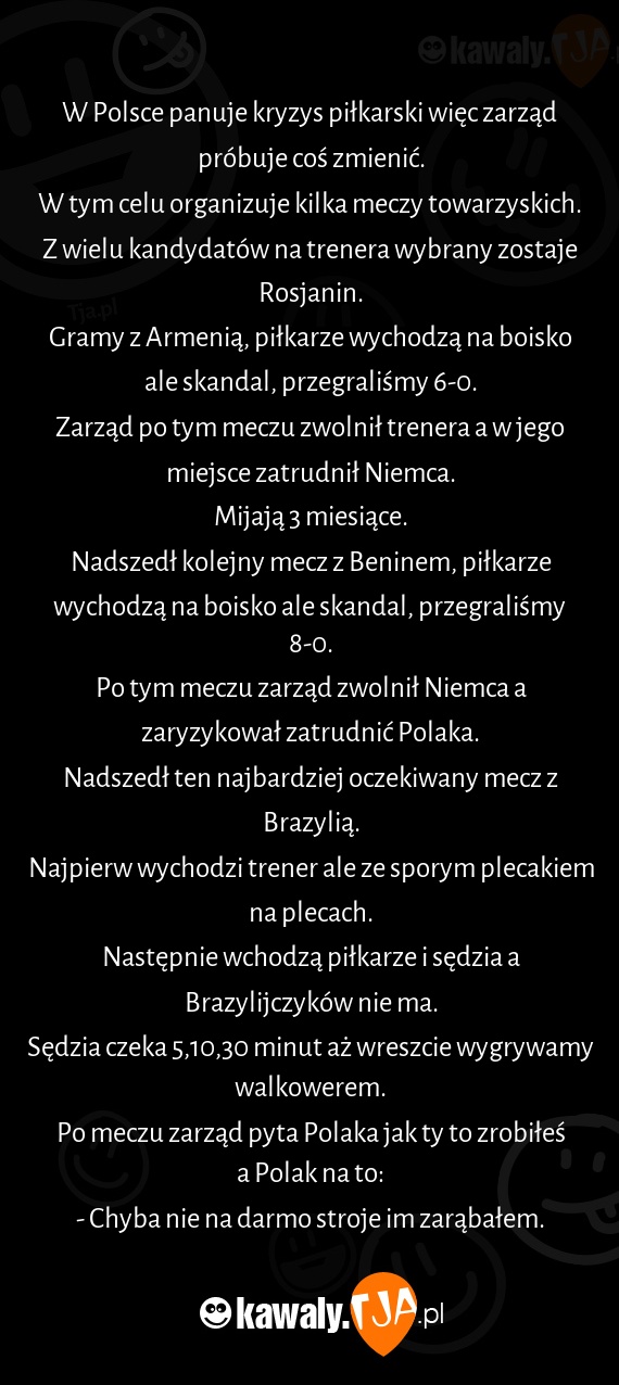 Po meczu zarząd pyta Polaka jak ty to zrobiłeś a Polak na to: