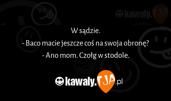 W sądzie. - Baco macie jeszcze coś na swoja obronę? - Ano mom. Czołg w stodole.