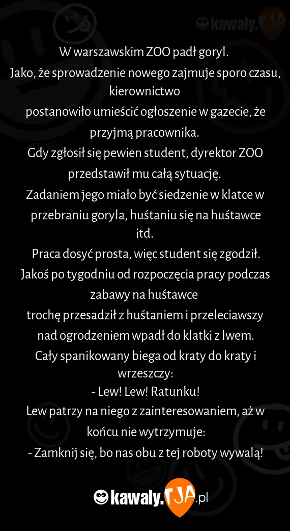 trochę przesadził z huśtaniem i przeleciawszy nad ogrodzeniem wpadł do klatki z lwem.