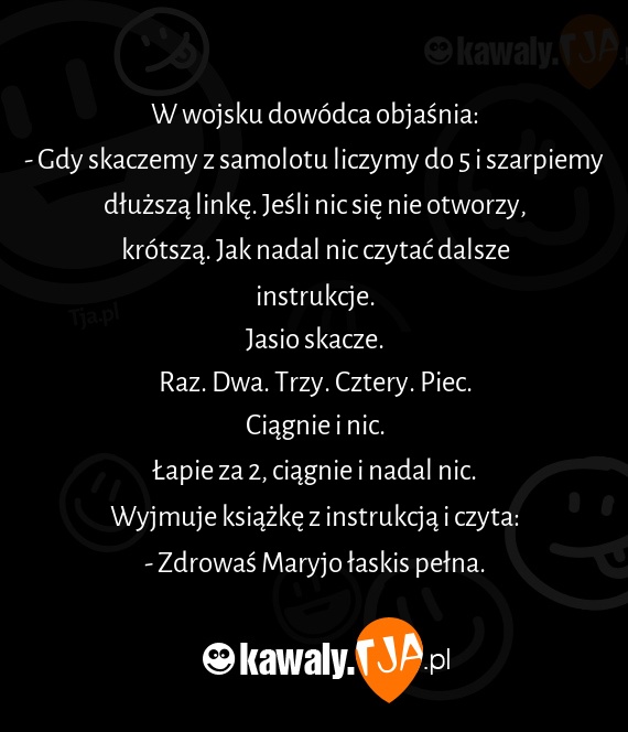 - Gdy skaczemy z samolotu liczymy do 5 i szarpiemy dłuższą linkę. Jeśli nic się nie otworzy, krótszą. Jak nadal nic czytać dalsze instrukcje.