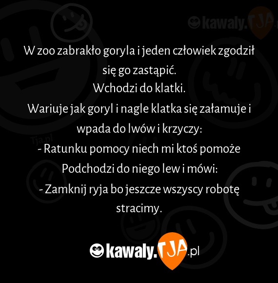 Wariuje jak goryl i nagle klatka się załamuje i wpada do lwów i krzyczy: