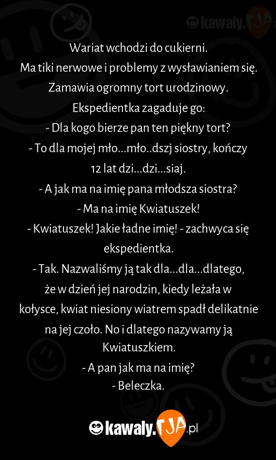 - Kwiatuszek! Jakie ładne imię! - zachwyca się ekspedientka.