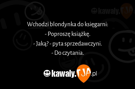 Wchodzi blondynka do księgarni: - Poproszę książkę. - Jaką? - pyta sprzedawczyni. - Do czytania.