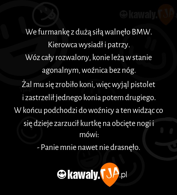W końcu podchodzi do woźnicy a ten widząc co się dzieje zarzucił kurtkę na obcięte nogi i mówi: