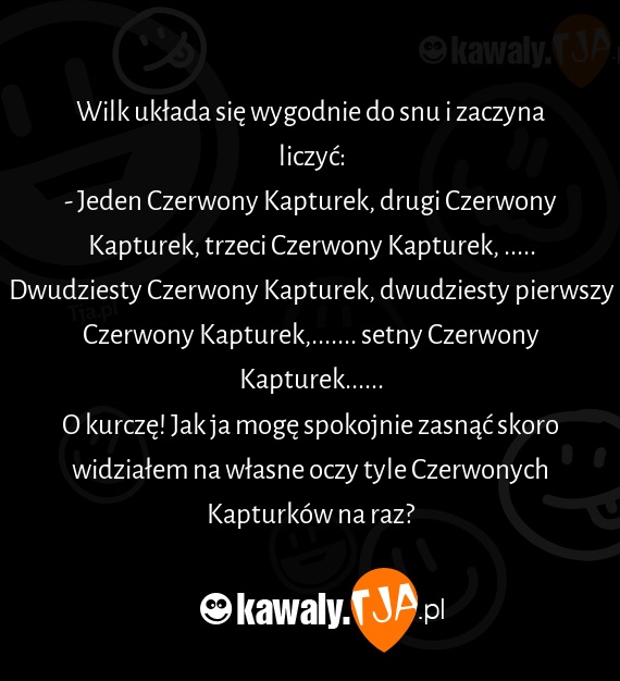 - Jeden Czerwony Kapturek, drugi Czerwony Kapturek, trzeci Czerwony Kapturek, ..... Dwudziesty Czerwony Kapturek, dwudziesty pierwszy Czerwony Kapturek,....... setny Czerwony Kapturek......