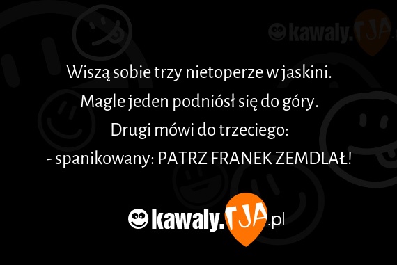 Wisza sobie trzy nietoperze w jaskini. Magle jeden podniosl sie do gory. Drugi mowi do trzeciego: - spanikowany: PATRZ FRANEK ZEMDLAL!