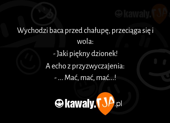 Wychodzi baca przed chałupę, przeciąga się i wola: - Jaki piękny dzionek! A echo z przyzwyczajenia: - ... Mać, mać, mać...!