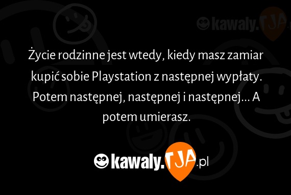 Zycie rodzinne jest wtedy, kiedy masz zamiar kupic sobie Playstation z nastepnej wyplaty. Potem nastepnej, nastepnej i nastepnej... A potem umierasz.