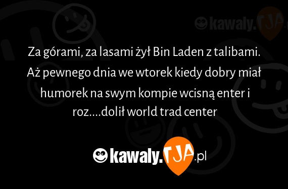 Za górami, za lasami żył Bin Laden z talibami. Aż pewnego dnia we wtorek kiedy dobry miał humorek na swym kompie wcisną enter i roz....dolił world trad center