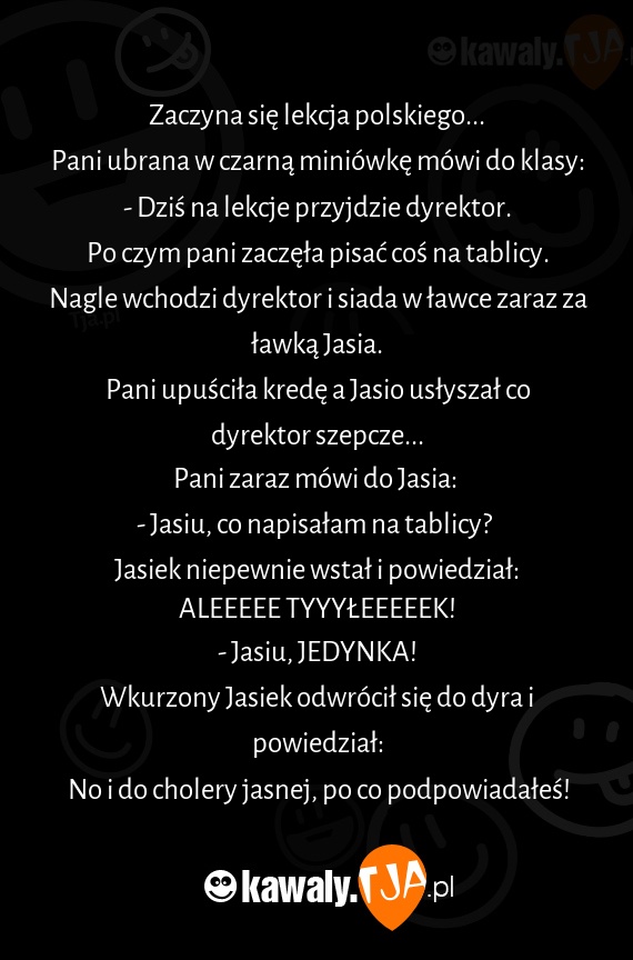 Pani upuściła kredę a Jasio usłyszał co dyrektor szepcze...