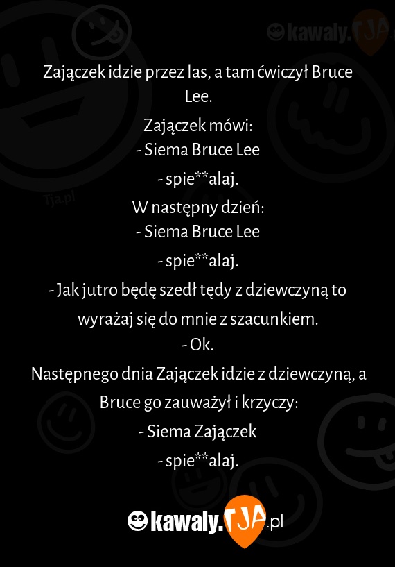 Zajączek idzie przez las, a tam ćwiczył Bruce Lee.
