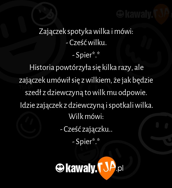 Historia powtórzyła się kilka razy, ale zajączek umówił się z wilkiem, że jak będzie szedł z dziewczyną to wilk mu odpowie.