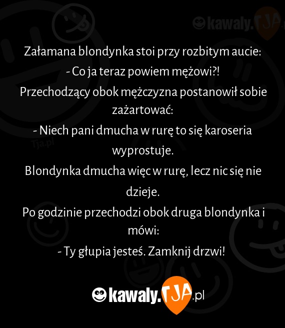 Po godzinie przechodzi obok druga blondynka i mówi: