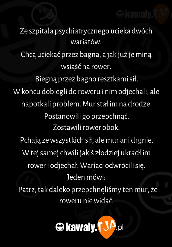 W tej samej chwili jakiś złodziej ukradł im rower i odjechał. Wariaci odwrócili się.