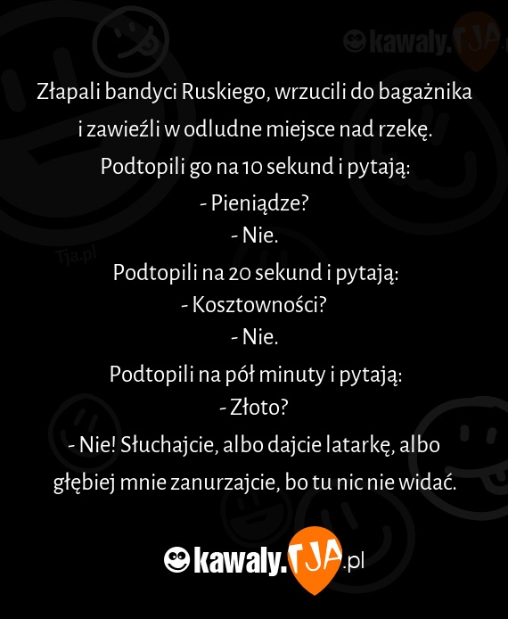 Złapali bandyci Ruskiego, wrzucili do bagażnika i zawieźli w odludne miejsce nad rzekę. Podtopili go na 10 sekund i pytają:
